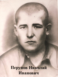Рождение 1923 год село Панская Гвоздевка Русско-Гвоздевская волость Землянский уезд Воронежская губерния. Русский. Призван в Красную армию в сентябре 1942 года Каратузским РВК село Каратуз одноименного района Красноярского края. Последнее письмо от сына Перунова Анна Ивановна получила в апреле 1943 года. По запросу Каратузского РВК от 31 мая 1947 года Управление по учету погибших и пропавших без вести Министерства обороны СССР сообщило, что командир отделения сержант Перунов Николай Иванович пропал без вести в июле 1943 года.
