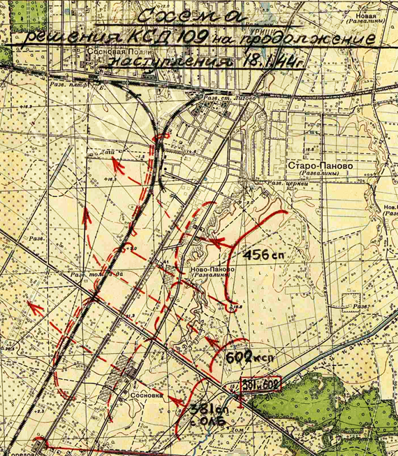 Противник в связи с активными действиями наших частей вел себя настороженно, усиленно обстреливал автоматно-пулеметным огнем наш передний край, вел методический артиллерийско-минометный огонь по вероятным сосредоточениям, особенно по лощине реки Ковровка с направлений: Пановские овраги, Финское Коврово, Ново-Ивановские овраги. 17 января 1944 года. После перегруппировки подразделений полка, выполняя поставленную задачу, 8:00, после артиллерийского налета, атаковал противника в районах наступления и, успешно прорвав его передний край, вышел на рубеж реки и Дудергофка. Противник, понеся потери, отдельными группами отошел на рубеж Ново-Паново и дороги юго-западнее Ново-Паново. В 9:00 часов 2-й батальон форсировал реку Дудергофка, вышел на рубеж 150 м западнее реки Дудергофка, где встретил организованный огонь противника и с западной окраины Ново-Паново и Сосновка. Батальон залег и вел огневой бой, приводил себя в порядок, подтягивал огневые средства и готовился к атаке. Противник же из Сосновая Поляна, поселок Володарский, Кауппилово, Константиновка, церковь Старо-Паново вел артиллерийско-минометный огонь по нашим боевым порядкам. Командиром полка было принято решение: на рубеже реки Дудергофка привести подразделения в порядок, подтянуть огневые средства и после огневого налета атаковать Ново-Паново. В результате атаки подразделения 2-го батальона продвинулись вперед, и вышли на рубеж: 100 м южнее кладбище Старо-Паново (3542-в), полевая дорога 200 м юго-восточнее отметки 18-8 (3441-г). На достигнутом рубеже была организована жесткая оборона ротными и взводными опорными пунктами, производилась работа по закреплению достигнутого рубежа. Личный состав подразделений в полной боевой готовности нес усиленную службу и наблюдение за противником, которая контролировалась непрерывно офицерским составом. Перед фронтом 4-й стрелковой роты выставлено боевое охранение и секрет, перед 6-й и 5-й ротами — секреты. В ночь на 18 января 2-й батальон силой стрелкового отделения вел разведку противника в направлении Ново-Паново по центральной траншее с задачей: установить, какими силами обороняет противник Ново-Паново и захватить пленных. В результате атаки понесены потери в личном составе: убито 14, ранено 50 человек, в том числе офицерского состава ранено 5 человек.