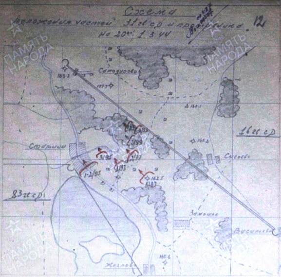 В ночь на 1 марта части дивизии вышли на исходные рубежи для наступления. Противник методическим огнем артиллерии, минометов и огнем шестиствольного миномета обстреливал боевые порядки частей дивизии и дороги. Саперами дивизии в течение ночи было проделано 18 проходов в проволочных заграждениях на полк шириной по 15 м каждый и 2 прохода для танков по 50 м ширины. В проволоке противника проделано 5 проходов. В 9:40 началась артиллерийская подготовка. В 11:20 части перешли в атаку в направлении отметки 163-3, Старица. Противник оказывал ожесточенное сопротивление огнем артиллерийско-минометных батарей, которые не были подавлены во время артиллерийской подготовки. В 11 часов 40 минут 99-й и 97-й гвардейские полки овладели передовыми траншеями противника, 95-й полк успехов в продвижении не имел. К 13:00 часам 99-й полк вел бой за южную опушку рощи 300 м северо-восточнее Старицы. 97-й полк, овладев в 12:30 высотой 162-5, вышел к юго-восточной окраине Старицы. 95-й полк овладел передовыми траншеями противника. Справа 16-я СД овладела высотами 162-0, 160-1. Слева 83-я ГСД успеха в продвижении не имела вследствие сильного огня противника. К исходу дня дальнейшего успеха части не имели. Во 2-й половине дня, подтянув резервы, противник предпринял ряд контратак силами от роты до батальона пехоты, поддержанных мощным артиллерийско-минометным огнем, с целью восстановить положение. В 20:30 ротой контратаковал 2-й батальон 99-го полка, в 20:45 до роты автоматчиков контратаковали 1-й и 2-й батальоны 95-го полка. В 21:30 теми же силами контратаку против 95-го полка повторил. В 23:00 контратаковал 99-й полк из леса северо-восточнее отметки 163,3. В 23:15 полутора ротами автоматчиков контратаковал 95-й гвардейский полк. Все контратаки были отбиты. Части дивизии вели бой на рубеже: 99-й полк — мелкий лес северо-восточнее Старицы; 97-й полк — отдельные домики севернее отметки 162-5 — западные скаты высоты 162-5; 95-й полк — окраина Старицы. Потери дивизии без 97-го полка: убито 51, ранено 259 человек. Потери противника: убито и ранено до 350 человек, уничтожено 14 пулеметов, 4 орудия калибра 76 мм, 1 автомашина. Захвачено 17 пленных, из них до штаба дивизии доведено 9 человек. Захвачено 2 орудия калибра 76 мм, 2 рации, 3 пулемета и 5 телефонов. 2 марта 1944 года. В течение ночи части дивизии продолжали вести бой за Старицы и лес севернее. Противник оказывал упорное сопротивление артиллерийско-минометным огнем и контратаками пехоты. В 3:25 ротой пехоты контратаковал 95-й полк в направлении южной окраины Старицы. В 5:35 из Старицы контратаковал 97-й полк в направлении высоты 162-5 силами до батальона пехоты. Обе контратаки были отбиты. После 30-минутной артиллерийской подготовки части дивизии вновь перешли в наступление. К 13:00 часам части дивизии вели огневой бой на рубеже: 99-й полк — мелкий лес севернее Старицы; 97-й полк — западная опушка леса 700 м восточнее Старицы; 95-й полк — в центре Старицы. С 14:00 части дивизии повторили атаку на Старицы, причем 99-й полк, оставив прикрытие с запада, вел наступление на Старицы с севера. Успеха части дивизии не имели. Потери противника: убито и ранено до 500 солдат и офицеров. Уничтожено 2 орудия 76 мм. В бою погиб командир 2-го батальона 99-го полка гвардии капитан Лобусов. Потери 31 ГСД: убито 107, ранено 698 человек. 3 марта 1944 года Потери 31 ГСД с начала наступления: 99 ГСП — убито 42, ранено 188 человек; 97 ГСП — убито 32, ранено 180 челов