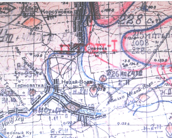 «Журнал боевых действий 228-й стрелковой дивизии. В ночь с 5 по 8 ноября 1943 года части дивизии совершенствовали свой оборонительный рубеж в инженерном отношении и приводили себя в порядок. В ночь с 7 на 8 ноября по приказу командира 57-го стрелкового корпуса части дивизии получили задачу провести частную операцию по овладению н. п. Недай Вода. Заняв исходное положение в 100–150 м от северной окраины н. п. Недай Вода, подразделения 795-го стрелкового полка к 7:00 часам 8 ноября без артиллерийской подготовки, преодолев сопротивление противника, огонь пехоты и пулеметов, оказались на северной окраине н. п. Недай Вода и к 11:00 часам достигли сев. скат отметки 120-3. В 11:30 с направления восточной окраины Недай Вода противник силами до 2 рот пехоты и 6 танков при одновременной поддержке самоходных орудий и до роты пехоты со стороны н. п. Терноватка контратаковал подразделения 795-го стрелкового полка. Благодаря плохой организации взаимодействия пехоты с артиллерией, отсутствию артиллерии в боевых порядках пехоты, на достигнутом рубеже 795-й стрелковый полк вел бой с превосходящими силами противника и, понеся потери, к 14:00 был вынужден отойти на исходный рубеж». В этом бою погиб минометчик 1 батальона 795 стрелкового полка 228 стрелковой дивизии красноармеец Илья Ильич Овчинников.